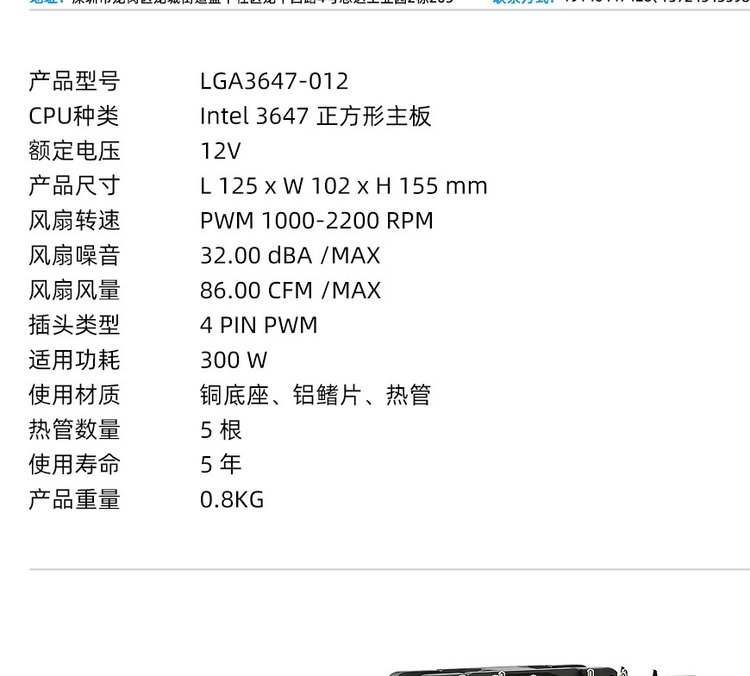 | 适用配件类型 | 英特尔LGA 3647 平台 | ||