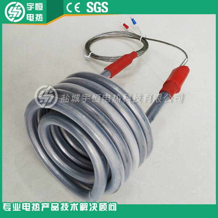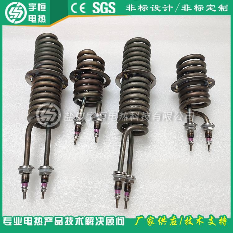 管状电热元件由金属管、螺旋状电阻丝及导热性好、绝缘性好的结晶氧化镁粉等组成。可以对系统进行加热的产品。电加热管选用优质国产厚壁无缝不锈钢管、美国进口高温氧化镁粉及封口材料,使电热管耐温达900℃,电热管在暂时脱水状态下干烧不会损坏;并采用气氛保护发黑网带炉经1060℃高温渗氮处理工艺,提高了电热管的耐高温和耐腐性,确保使用寿命 。加热管是在无缝金属管内(碳钢管、钛管、不锈钢管、铜管)装入电热丝,空隙部分填满有良好导热性和绝缘性的氧化镁粉后缩管而成,再加工成用户所需要的各种型状。它具有结构简单,热效率高,机械强度好,对恶劣的环境有良好的适应性。它可用于各种液体和酸碱盐的加热,同时也适应低溶点的金属加热溶化(铅、锌、锡、巴氏合金)