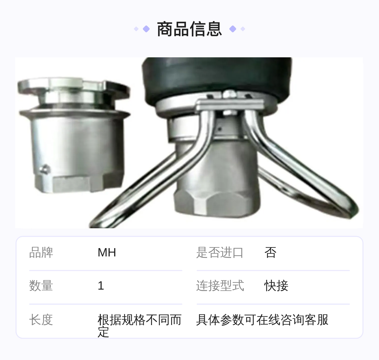 | 连接型式 | 快接 | ||