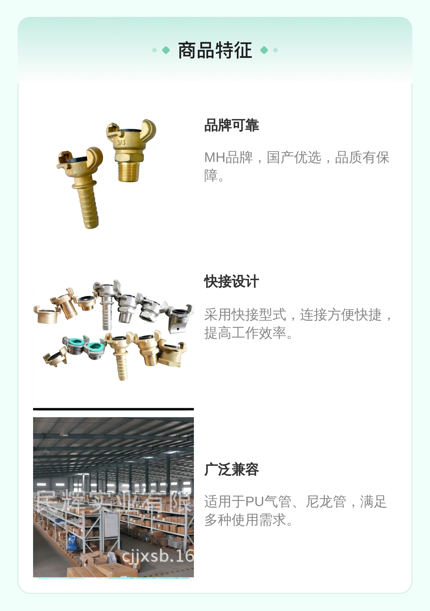 | 适用软管 | PU气管、尼龙管 | ||