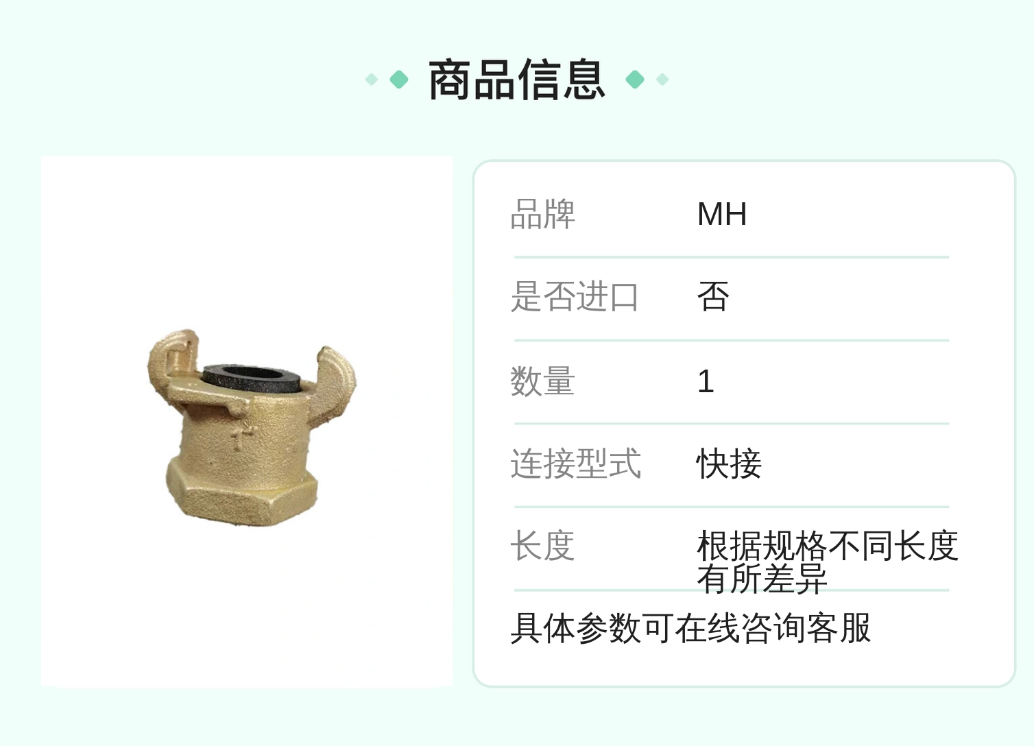 | 连接型式 | 快接 | ||