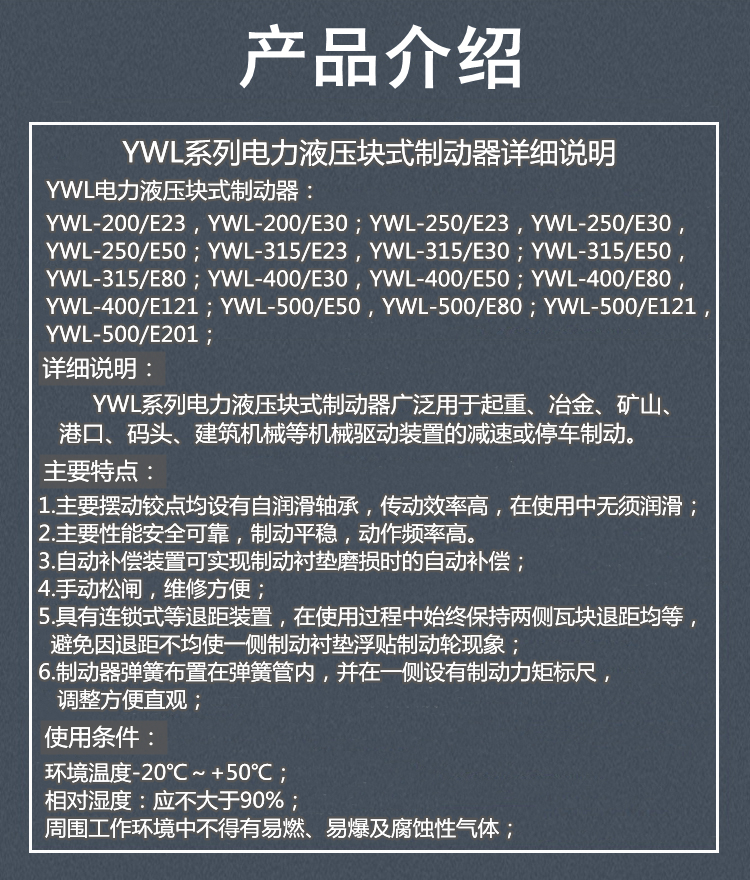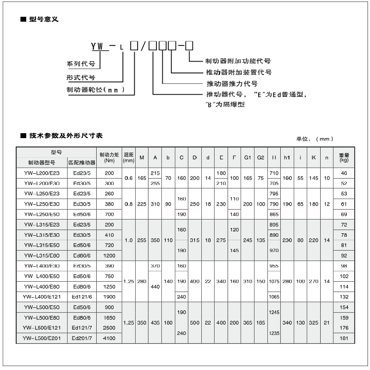 | YWL-315/E50行车液压制动器起重机抱闸刹车器 型号 | YWL-315/E50 | ||