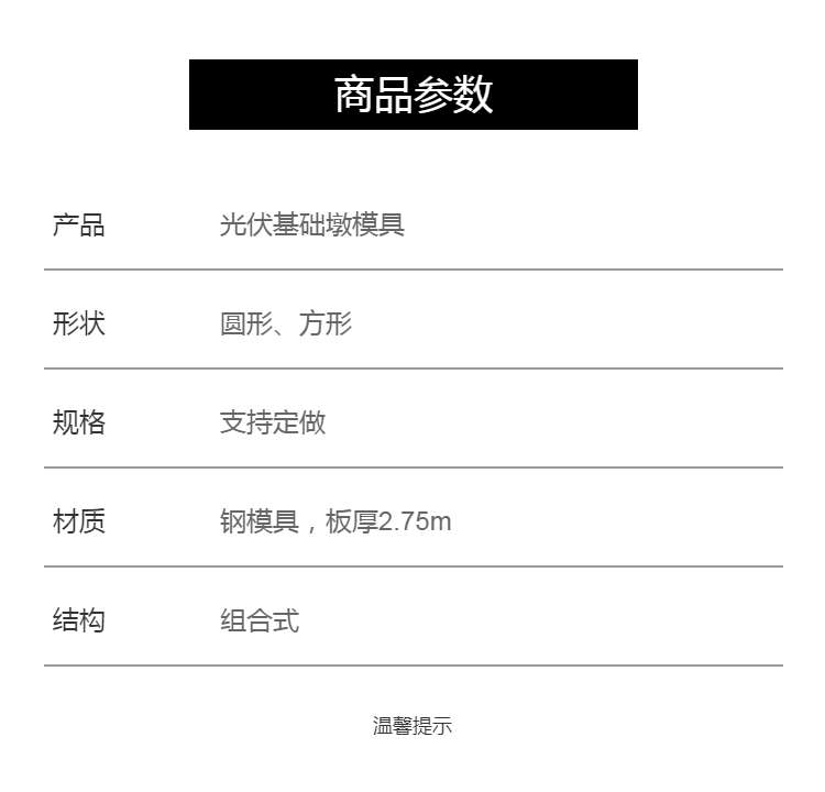 | 产品 | 光伏基础墩模具 | ||
