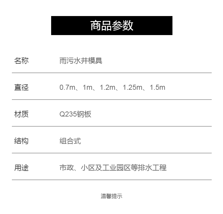 | 产品 | 雨污水井模具 | ||