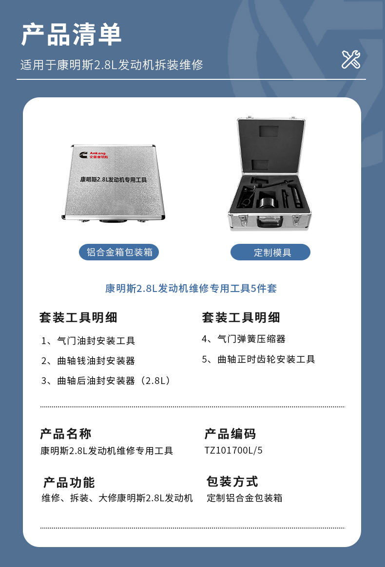 • 规格:康明斯2.8L发动机维修专用工具5件套
