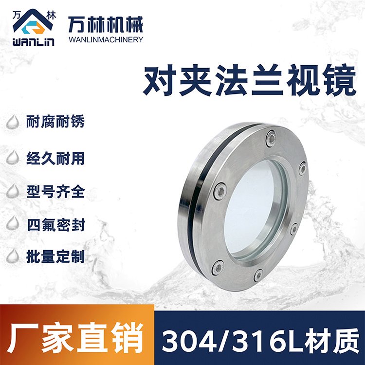 304-316L不锈钢对夹法兰视镜钢化玻璃人孔视窗带刮刀带灯