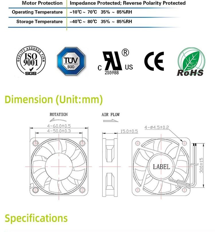 | 风叶材质 | PBT环保塑胶 | ||