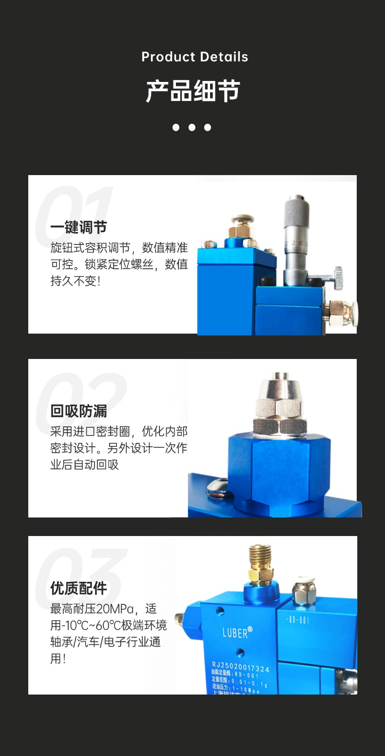 锐洁精密油脂定量阀黄油计量注脂点胶阀微量缸可调系统吸式0.1g