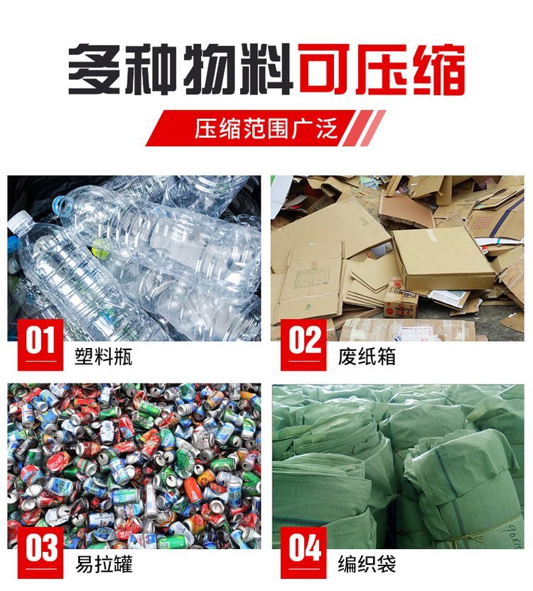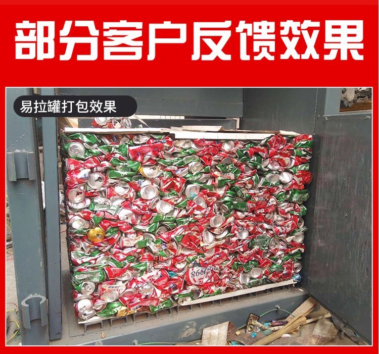 金属压块机设备可以把易拉罐、油漆桶、铁罐、废铁、废钢、铁皮、自行车、彩钢瓦、轻薄料、生铁、薄铁、露露罐、红牛罐、废铝、废铜、铁桶、汽车壳、汽车架子、金属边角料、铝合金等废旧金属一次压制成型。