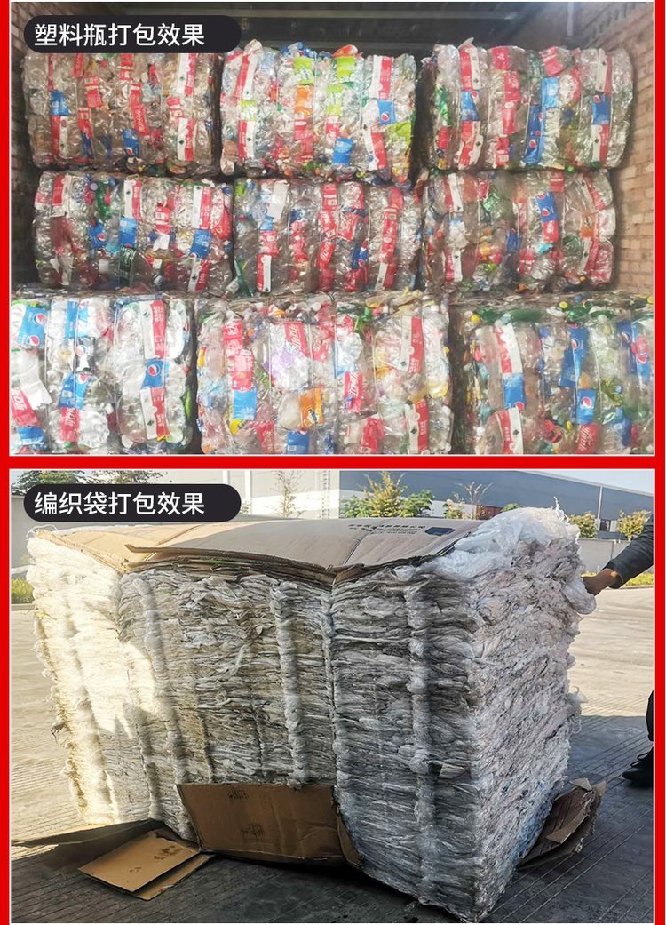 机器采用液压传动、结构紧凑、移装方便、操作简单、维修容易、密封可靠、安装时不用底脚螺丝。用户可根据需要自定打包规格、尺寸,以大限度地配合运输或存储,是提高劳动效率、减少劳动强度、节约人力、减少运输费用的好设备。