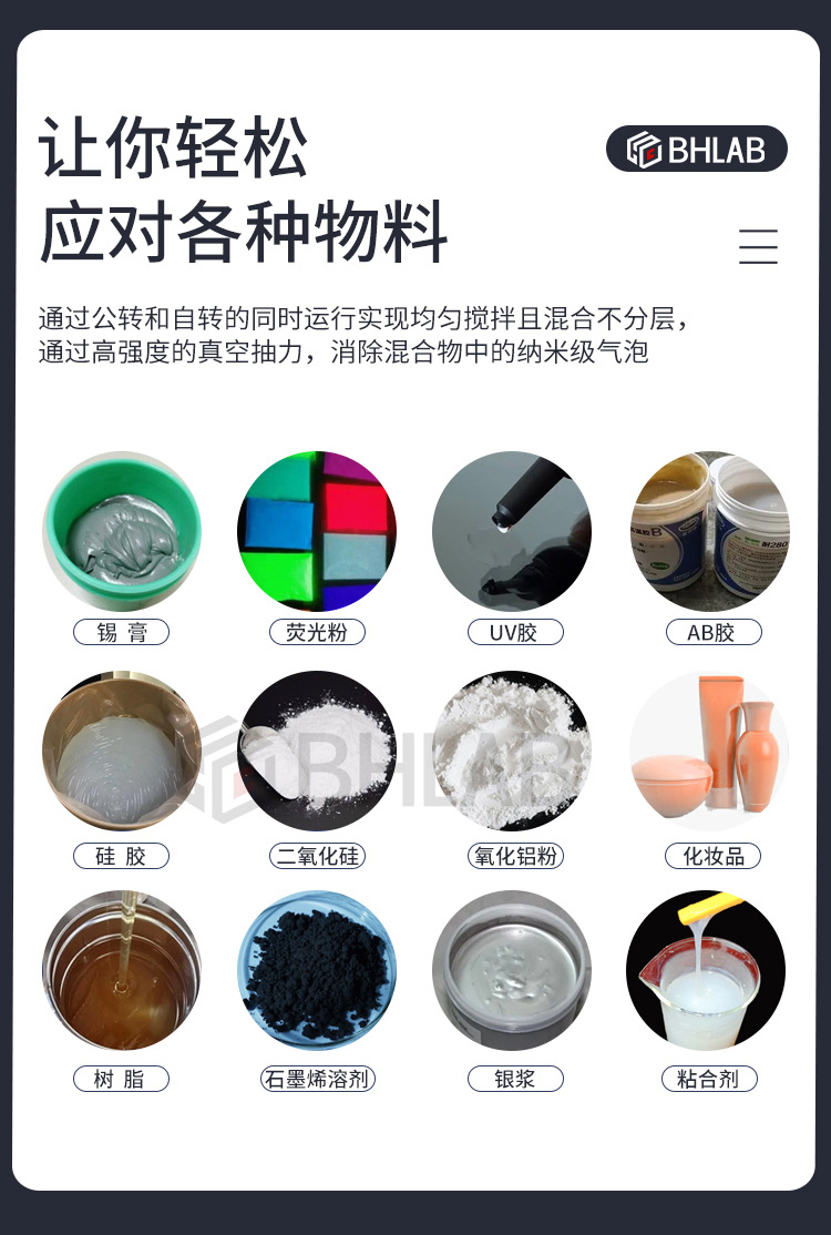 | 设备适用性 | (COB,贴片,仿流明,集成配粉胶)搅拌混合 | ||
