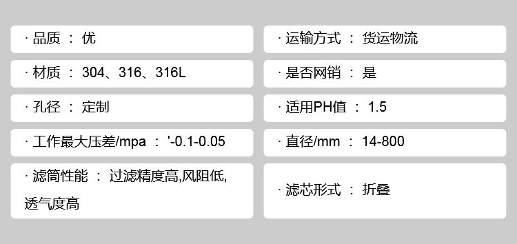 | 滤芯形式 | 折叠 | ||