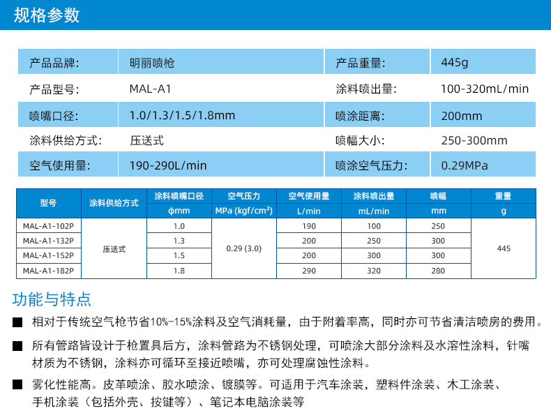 | 型号 | LVMP喷枪MAL-A1 | ||