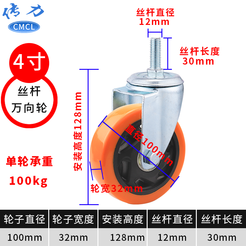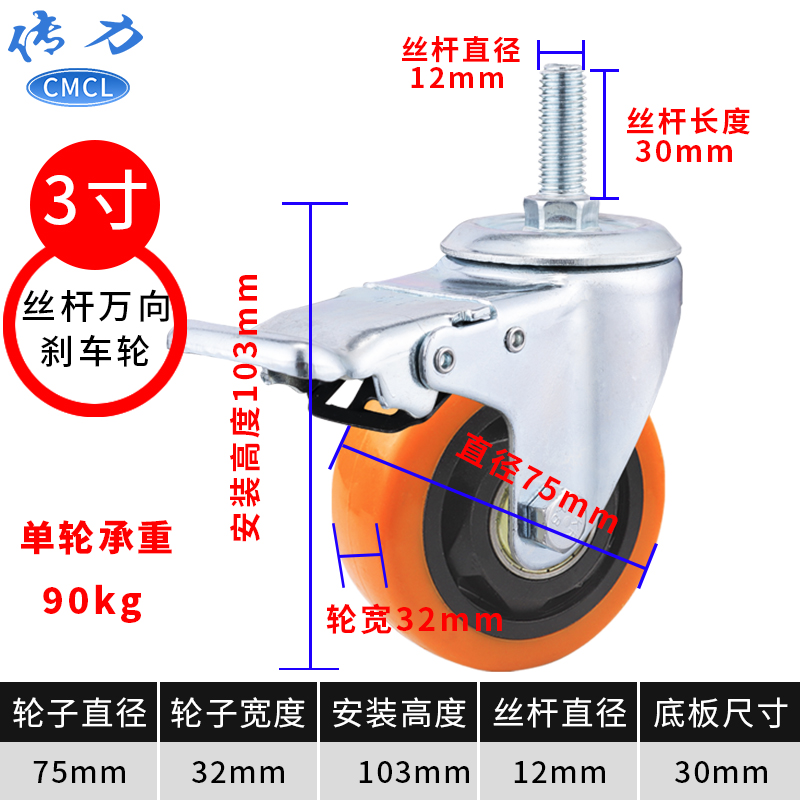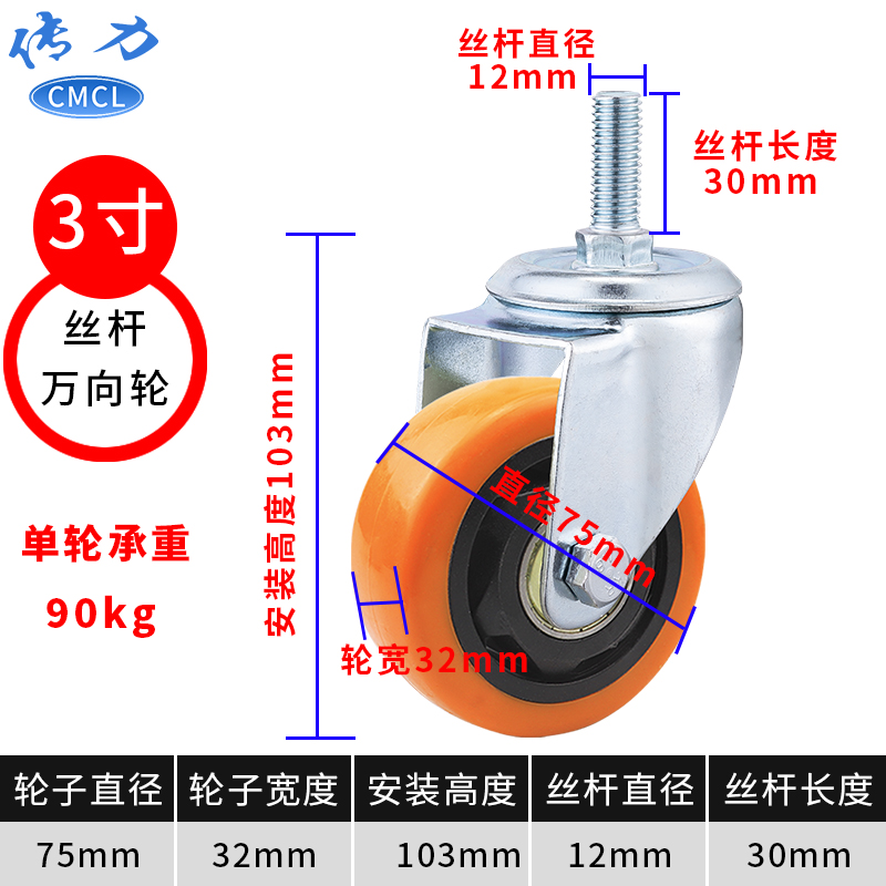 | 3寸通花脚轮丝杆尺寸 | M12x30MM | ||