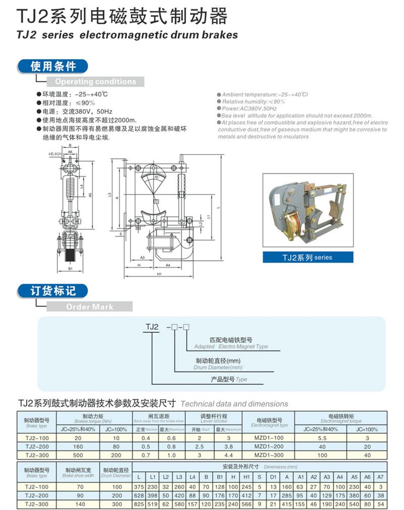 | 虹泰工厂现货供 TJ2-200/200电磁铁块式制动器 型号 | TJ2-200/200 | ||