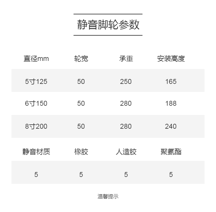 轮子直径 125mm 150mm 200mm