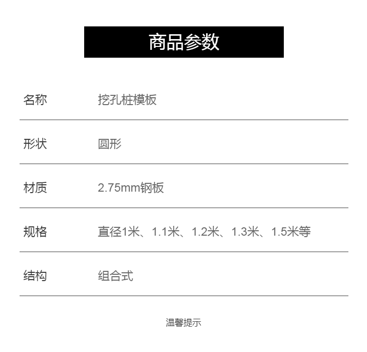 | 产品 | 挖孔桩模板 | ||