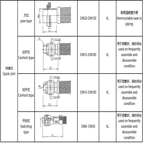 | 类型 | 法兰式、快速接头式、螺纹接头、卡盘接头、真空软管、橡胶软管 | ||