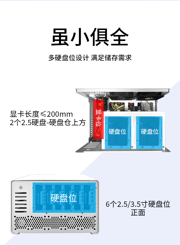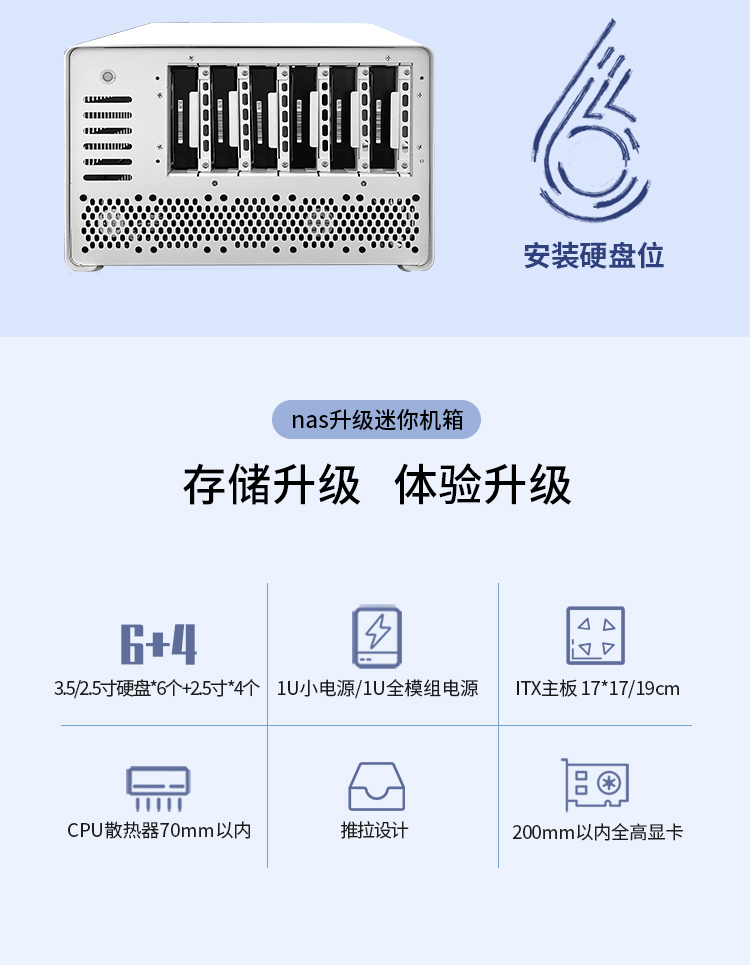 NAS机箱迷你电脑mini黑色小型家用硬盘10盘位服务器ITX全高PCIE