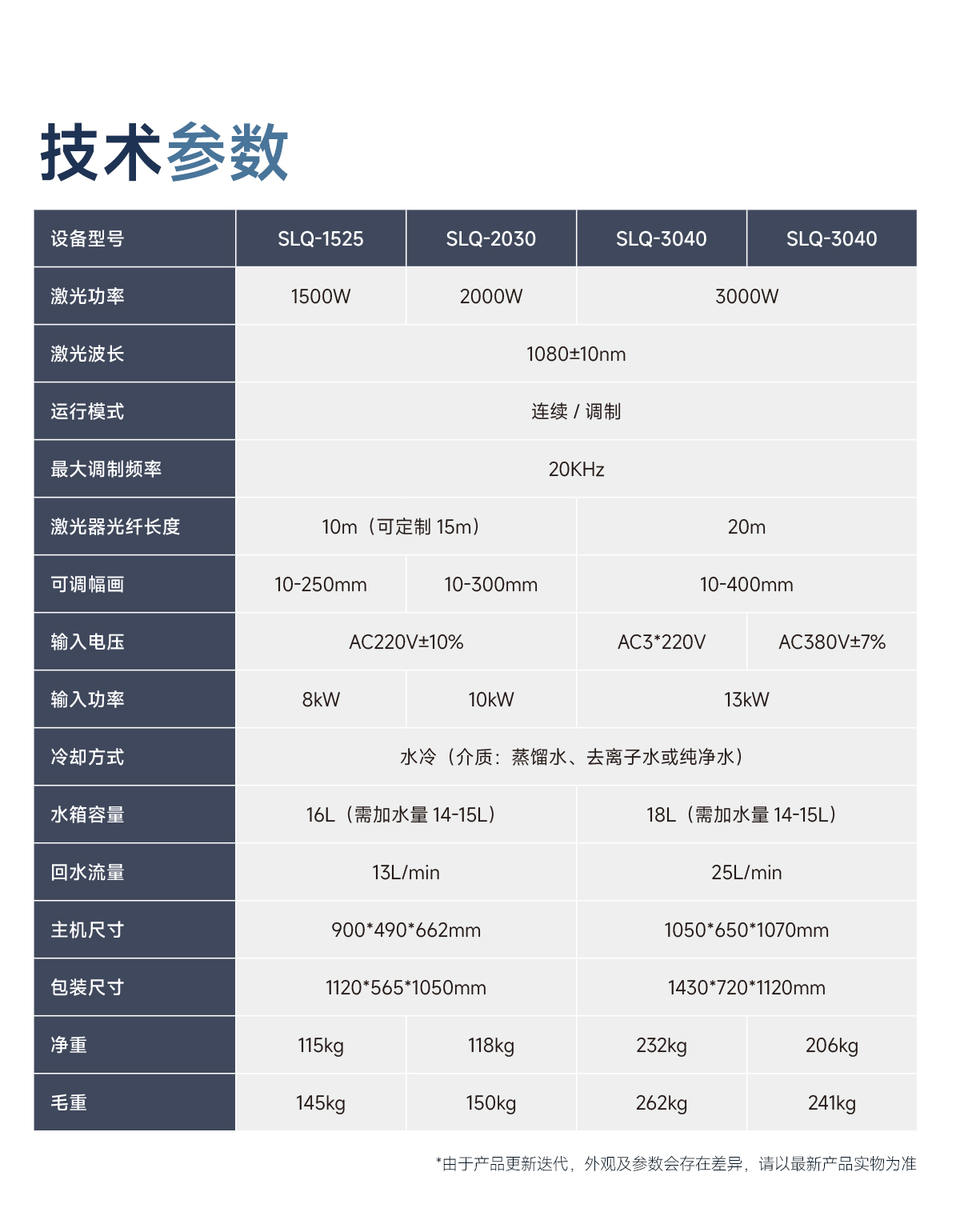 | 激光功率 | 1000W/1500W/2000W/3000W | ||