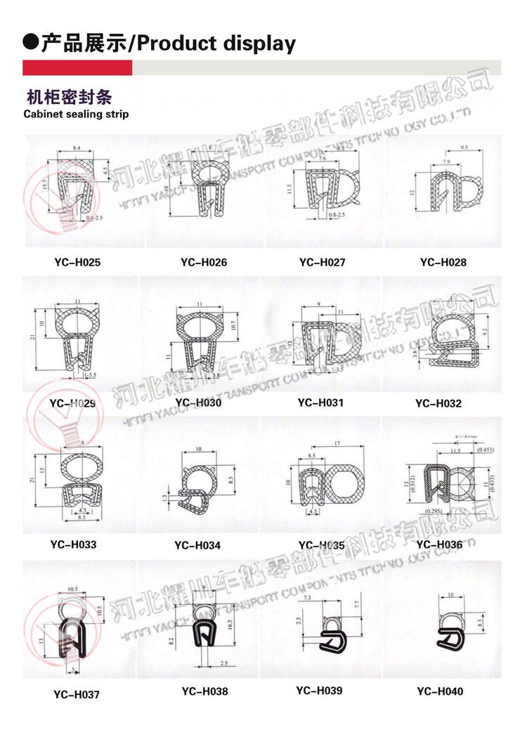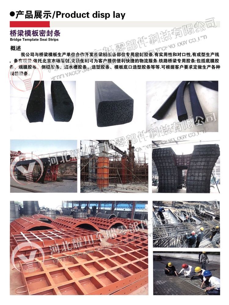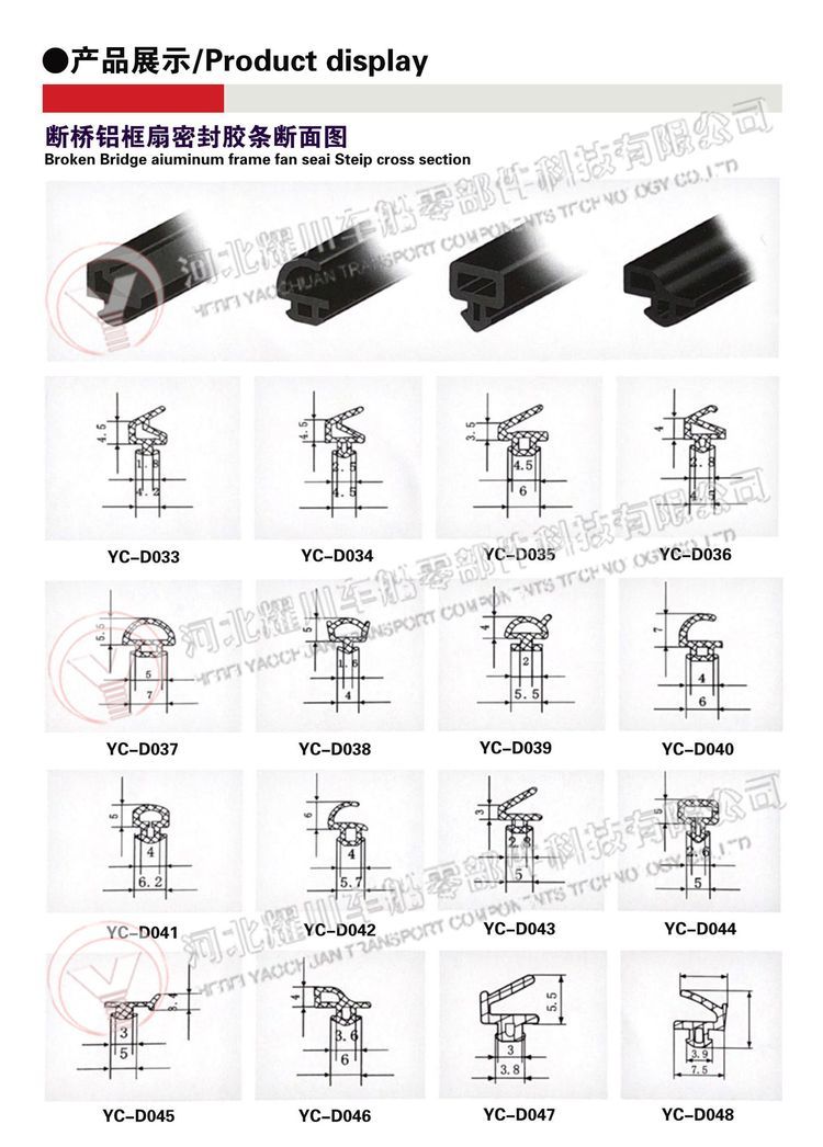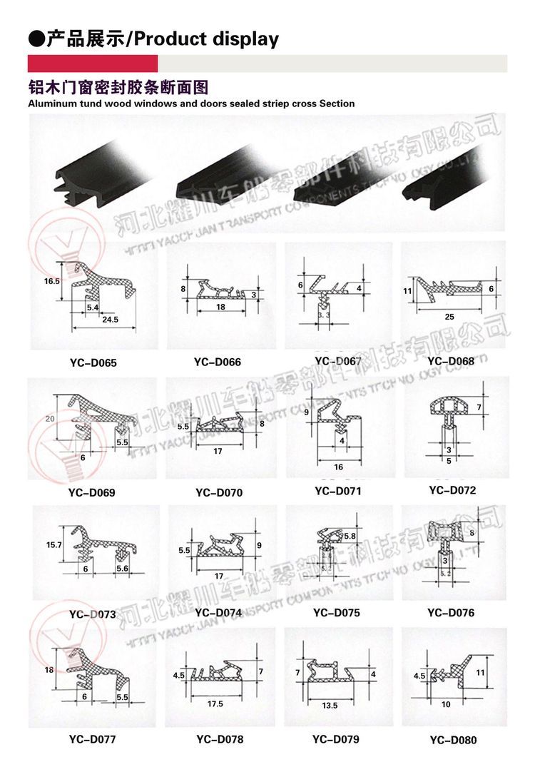 ? ? ? ? ?河北耀川车船零部件科技有限公司致力于从事PU包覆式、三元乙丙(EPDM)橡胶、PVC橡塑、TPE弹性体 TPV以及硅胶(密封条、胶管、胶圈、胶块、橡胶杂件)等各种橡胶产品的研发与生产。应用于建筑门窗、机械设备、机电五金、玻璃幕墙、汽车、火车、飞机、船舶制造等各种行业,可以按照客户要求加工定制各种橡胶制品。