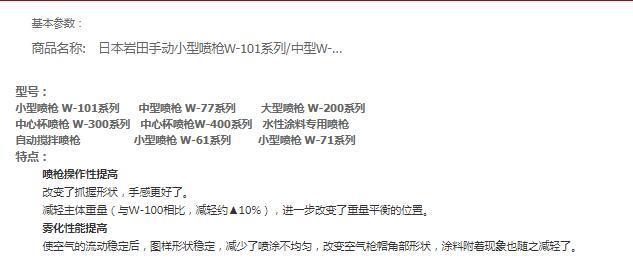 岩田ANESTIWATA手动小型喷枪W-101系列\/中型W-77\/大型W-200系列