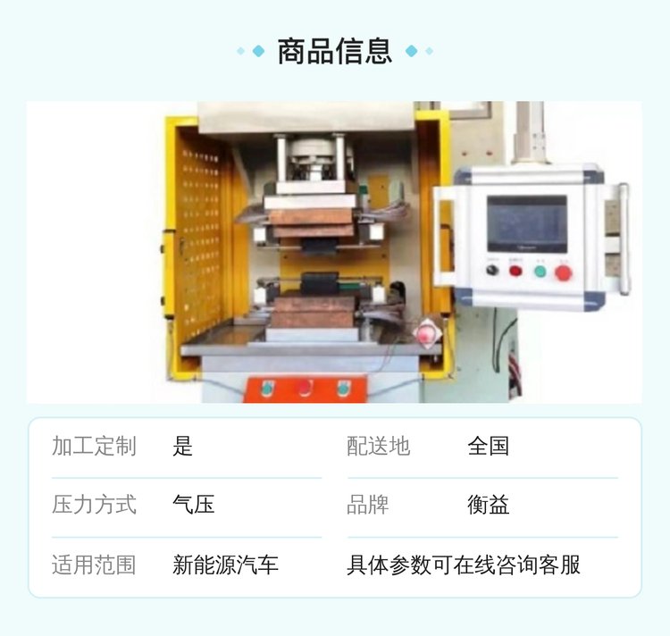 衡益数控铝箔焊接机中高频加热气压压力全国配送新能源汽车专用