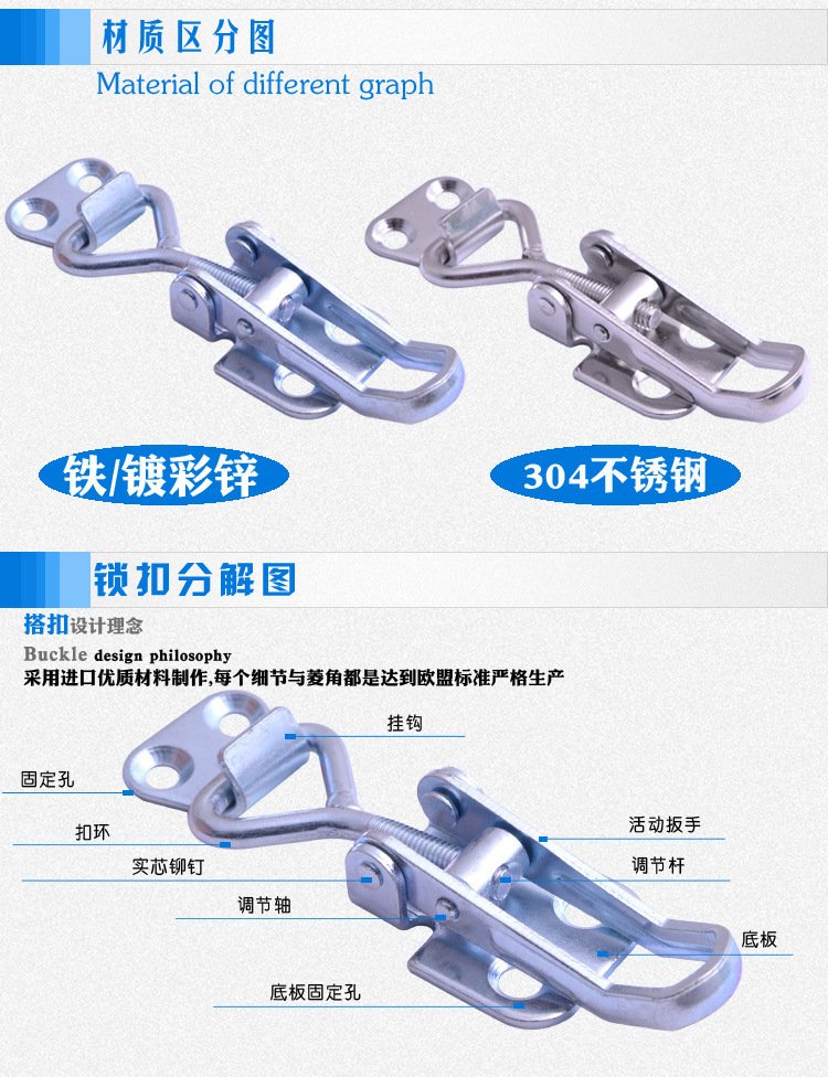 | 功能用途 | 重型可调节紧迫式搭扣 | ||