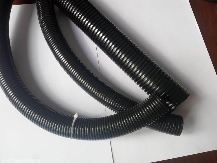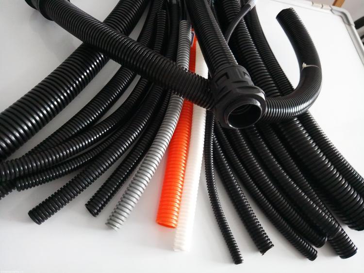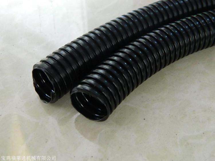 阻燃防水双层波纹管内部和外表均为波浪型,颜色一般为黑色,也有其他颜色,有的还可以开口,穿线更为方便快捷。 双拼剖开型波纹管特性为柔韧性好,抗扭曲,弯曲性能好,可承受较重的负载;耐酸、润滑油、冷却液等,表面有光泽,耐摩擦;双层可开式尼龙软管可以承受脚踩的重压,不断裂,不变形,可以迅速恢复,并且本身无损伤。