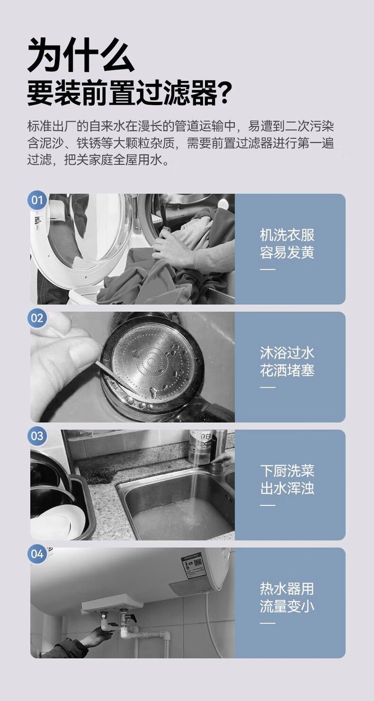安之源10寸全屋家用自来水过滤大通量中央过滤通用滤芯除余氯阻垢大白瓶前置过滤器