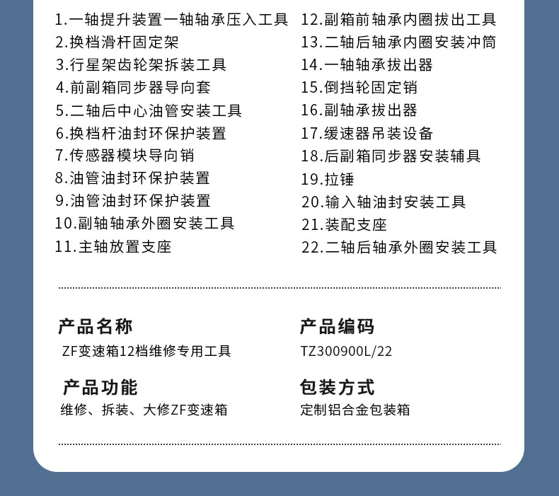 | 功能用途 | 采埃孚变速箱拆装 | ||