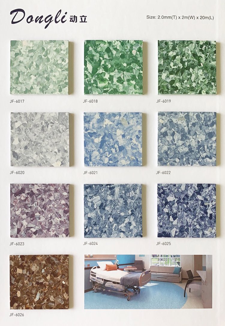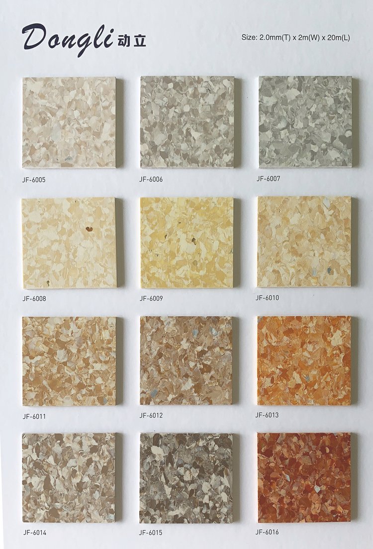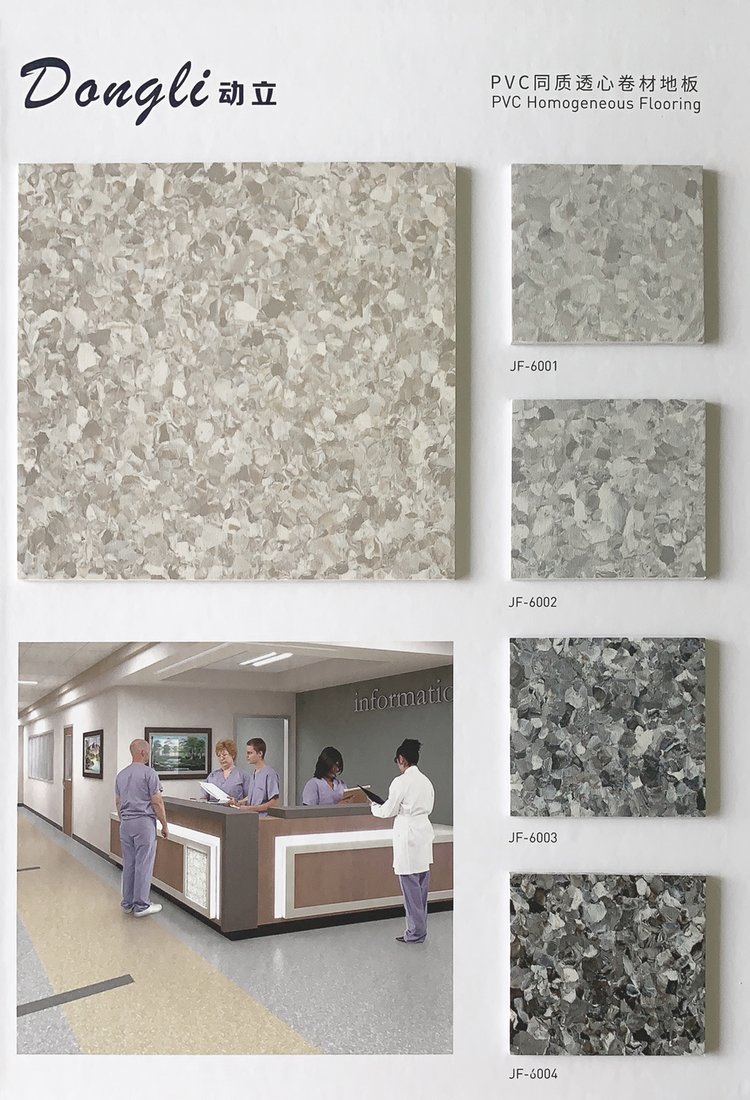 洁福动立同质透心PVC地板是一种经过加压处理的同质透心卷材地板,其颜色碎片与天然混合物经过特别处理后均匀的分布在地板内,加上其色彩丰富,适合多方面的设计。其经过Evercare特殊维护处理,提供无与伦比的易维护和耐化学物质性能,铺装之后终生无需打蜡!27个无方向性颜色组合。
