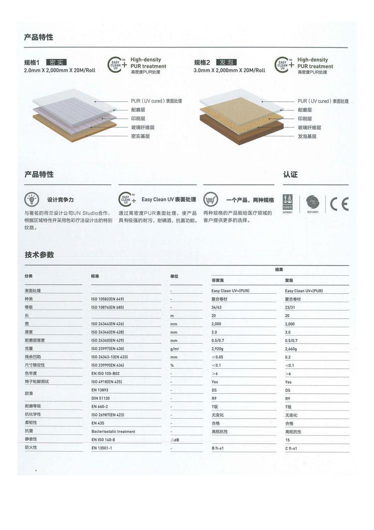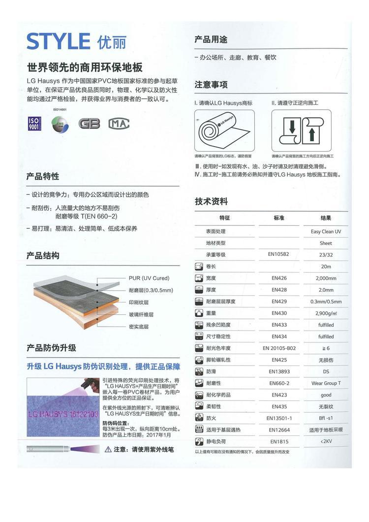 较强的防划性、不易磨损、耐磨等级(EN660-2)、易维护、维护成本低 。