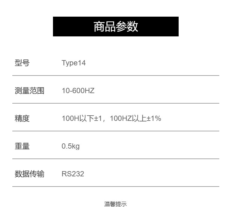 | 测量精度 | 低于 100Hz \/- 1 有效数字, 高于 100Hz \/- 1读数 | ||
