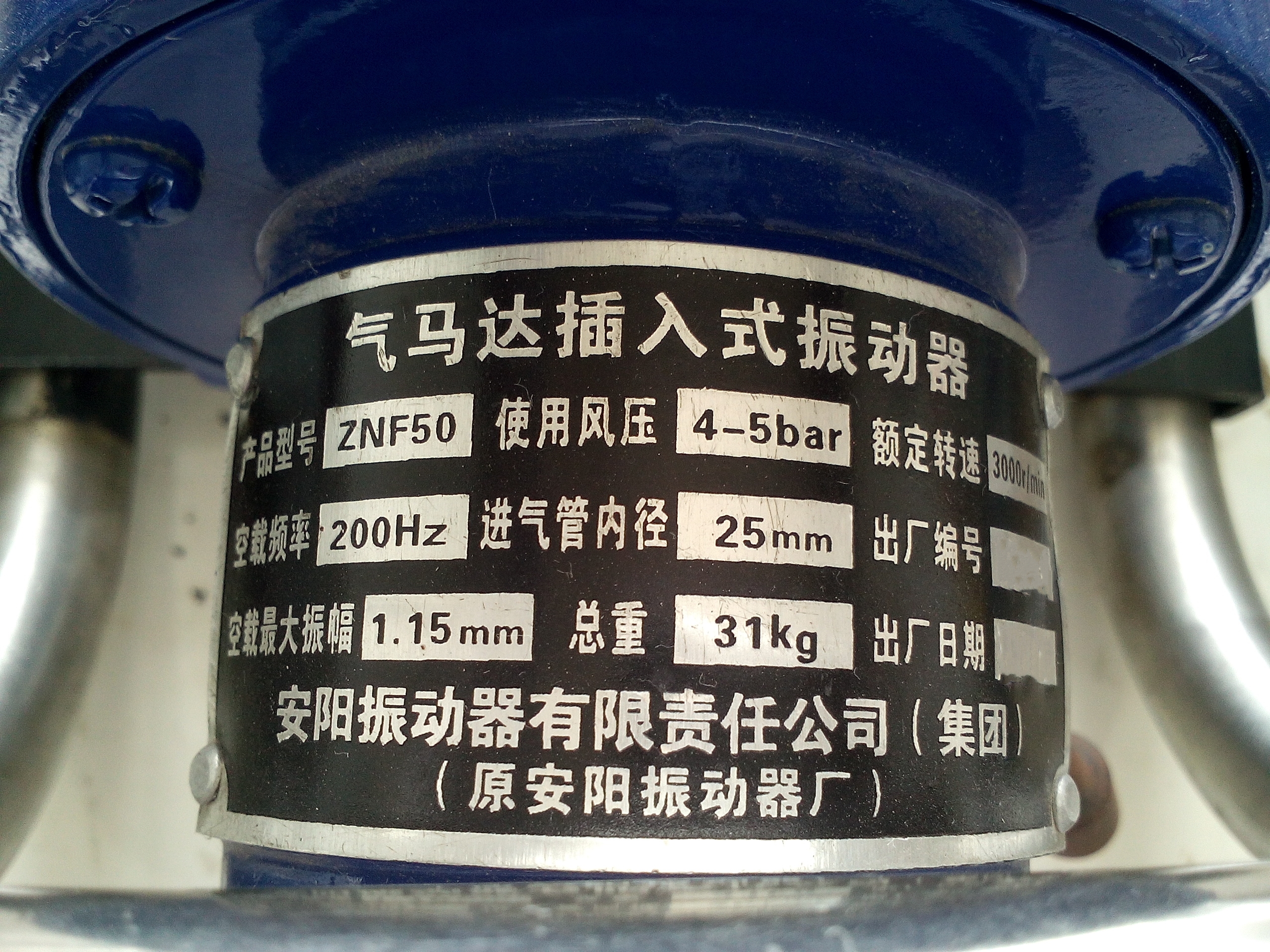 2、进气管内径不得小于25毫米,风压不得低于0.4Mpa,否则将对振动器造成严重损坏。