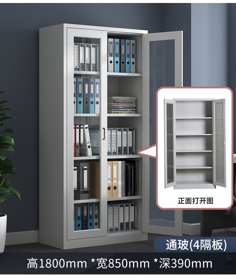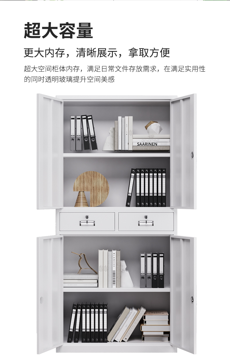 工厂员工上玻下铁文件柜不锈钢人脸识别指纹感应意合牌