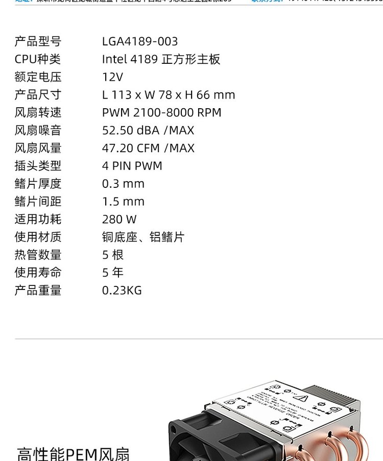 | 适用配件类型 | 英特尔LGA 4189 平台 | ||