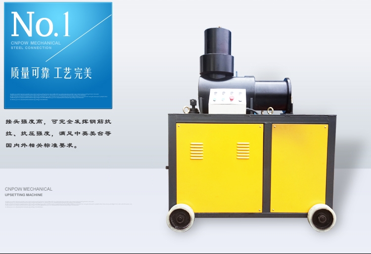 钢筋镦粗利用冷镦的原理使钢筋端头塑性变形,直径增大4~6mm,然后再加工螺纹。使加工螺纹后的实际 截面积大于原钢筋截面积,大大提高接头的抗拉强度。这种镦粗后的螺纹接头经拉伸实验检测全部断于母材,适用于建筑、路桥、高铁、电站要求较高的工程。中动DDC-32D双缸钢筋镦粗机已经通过市场调研全面创新和工地客户的层层把关,液压上采用超高压,低流量,低能耗。精度高、性能好、品质优良,操作简单、方便,最短的专业培训即可上岗操作,投放市场后,深受到广大用户的好评!