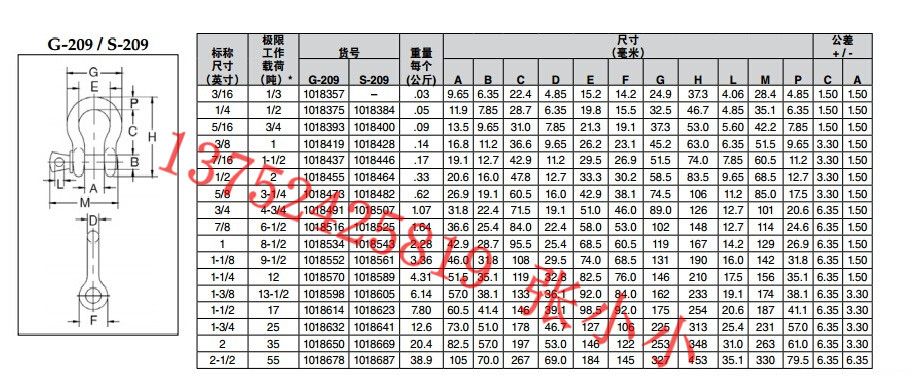 ? 1/2 吨至 25 吨的卸扣尺寸可满足 EN13889:2003 的性能要求。