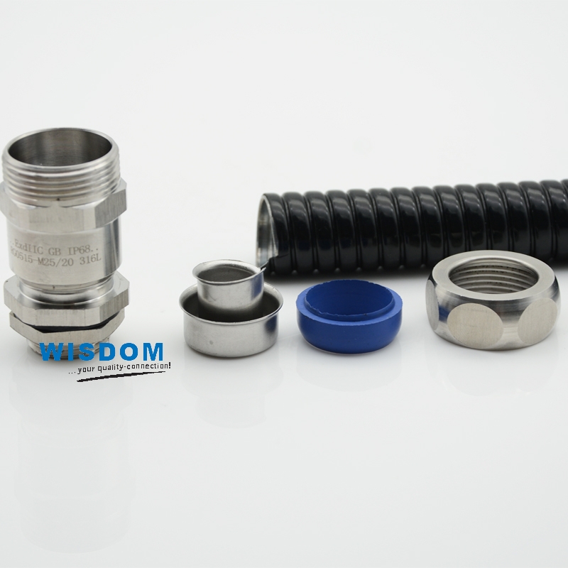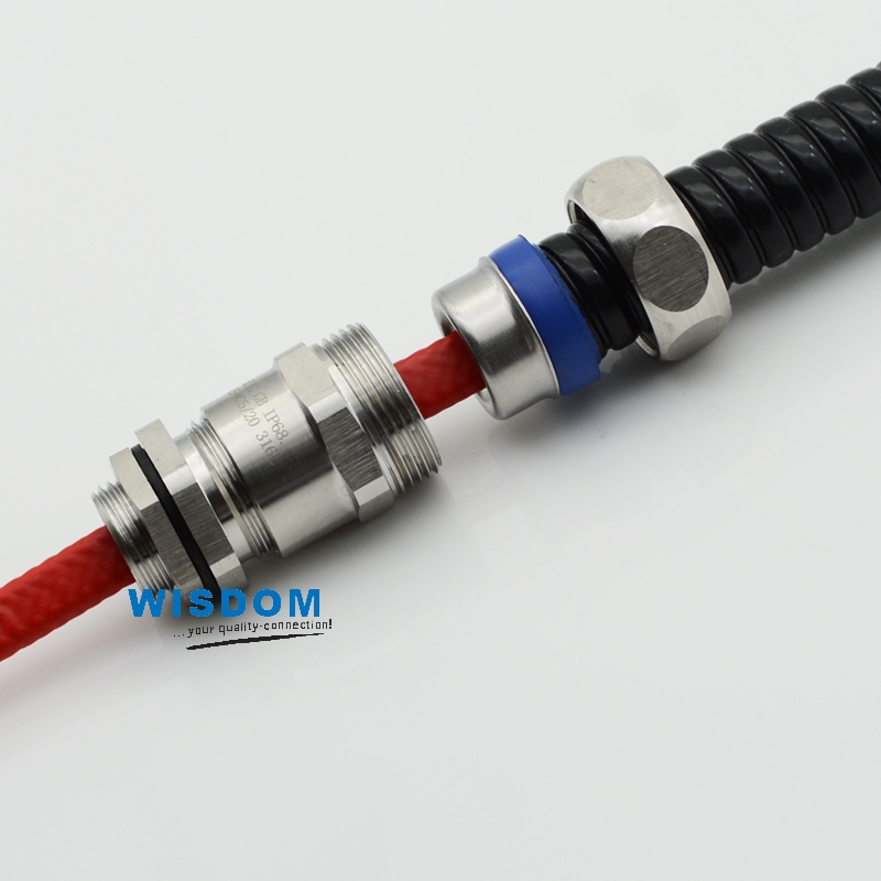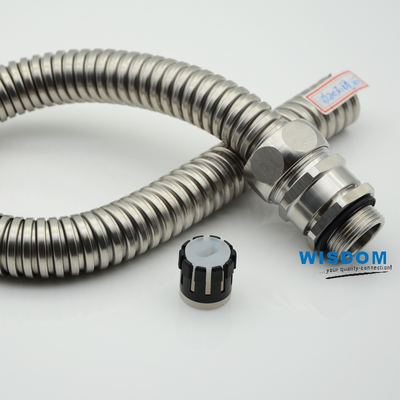 WSD-RG型不锈钢金属软管接头,采用特殊设计既可防电线松动,又可连接金属软管,装卸只需拔插无需工具,大大缩减了安装时间,夹紧电缆范围大抗拉力特强,产品有耐酸碱、耐化学物质与一般溶剂等抗腐特性,可防水、防尘。产品尺寸全面,广泛运用于机械设备、工程安装、造船、灯具照 明、电力机车等各大领域。安装时主要是将金属软管接头一头配管连接、箱体连接、设备连接孔、桥架连接等孔的大小,另一头其余一般是多大金属软管配多大接头.方便好用!