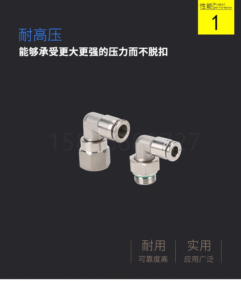 不锈钢L型快插内丝弯头具有连接牢靠、耐压能力高、密封性和反复性好、安装检修方便、工作安全可靠等特点