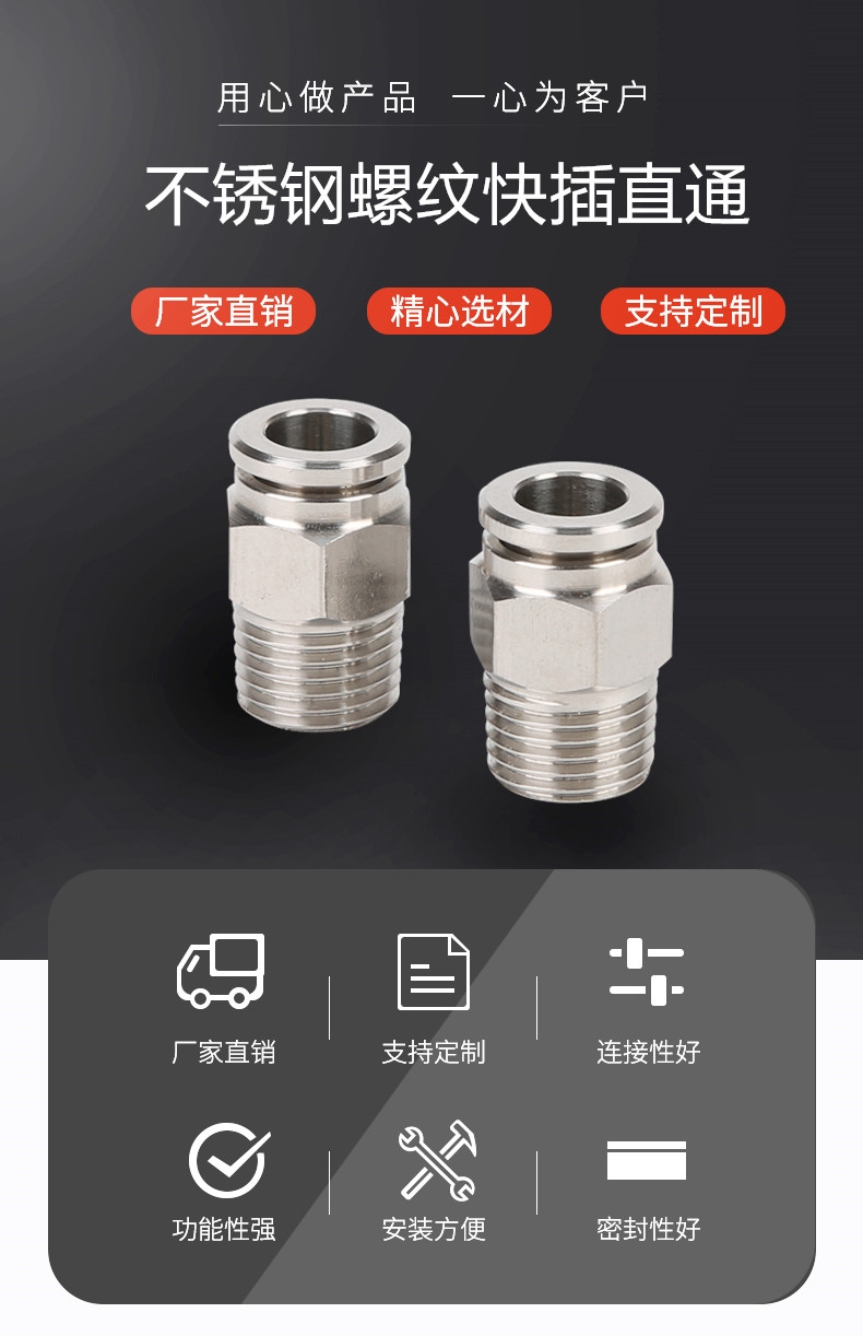 不锈钢快插丝扣直通接头特点: