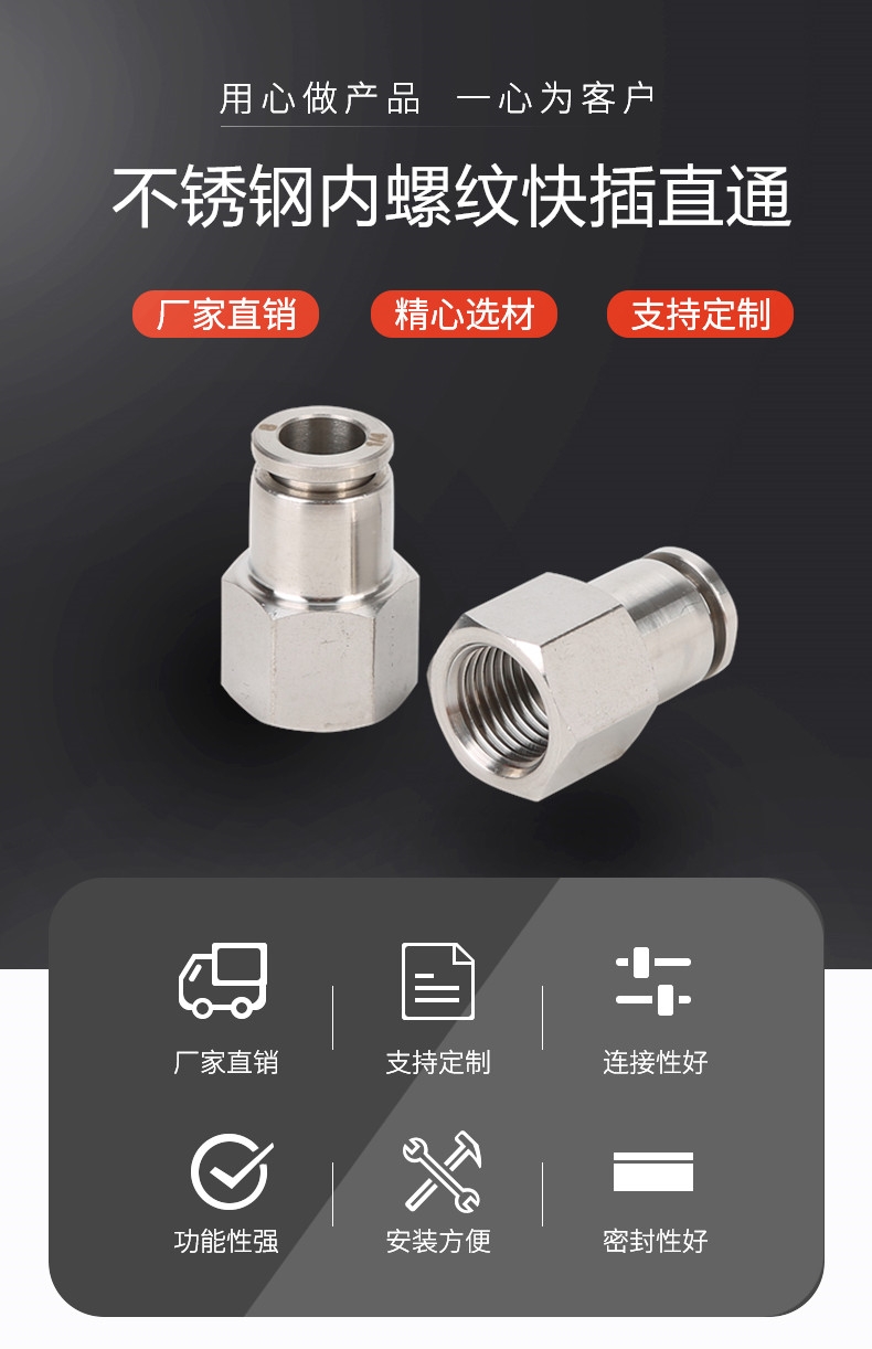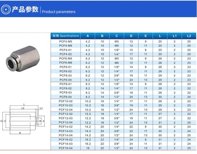 不锈钢快插内丝直通PCF详细介绍: