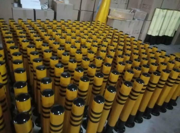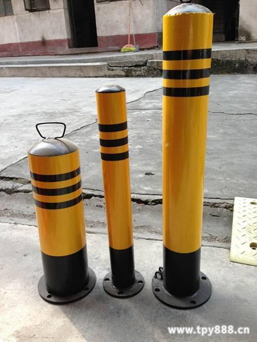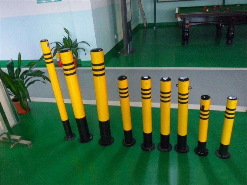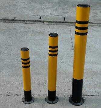 防撞柱又名防护桩,分为固定式与活动式,钢管外贴黄黑反光膜,起到反光提示作用。活动防护桩将立柱提起并移动在任何合适的地点,供车辆通行。在交通完毕之后即可将立柱重新置于底座上,上锁后即可避免其他车辆对于自有车位的侵占。可以在车库前、或者其他认为重要的场合前设置,起到保护好车库大门、避免暴力破坏的作用。防护桩可设置小圆环,用户可根据自己的需要加挂各色链条,能更好的起到防护作用。同时,小圆环的设计也让工作人员的操作移动更为简便容易,可谓是既实用、又人性化。