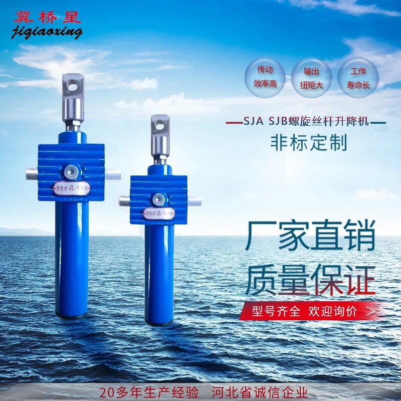 SJA、SJB螺旋丝杆升降机是一种基础起重部件,有不同的结构形式和装配形式,且提高度可按用户的要求定制,具有安装方便、使用灵活,功能多,配套形式多,可靠性高,,使用寿命长等许多优点。广泛应用于机械,建筑,水利,冶金设备等行业,具有起升,下降及借助辅件推进,翻转及高度位置调整等很多功能。可以按照客户要求设计非标产品。如:不锈钢壳体及丝杆螺旋升降机,多头丝杆,耐低温,耐高温等产品。模块化组合丰富了产品的组合变化,螺旋升降机可以直接与电机/减速电机/特殊功能附件的任意组合,一体化设计,提供多种选型组合。