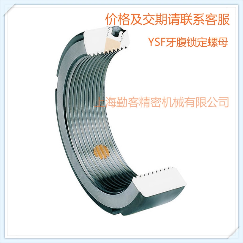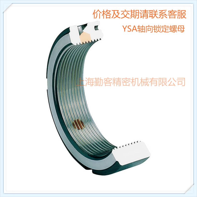 YSA轴向锁定螺母:为轴向三点式锁定,其厚度与YSF系列相同。轴向三点式锁定为其特点,适用于装配工作的特殊环境限制。
