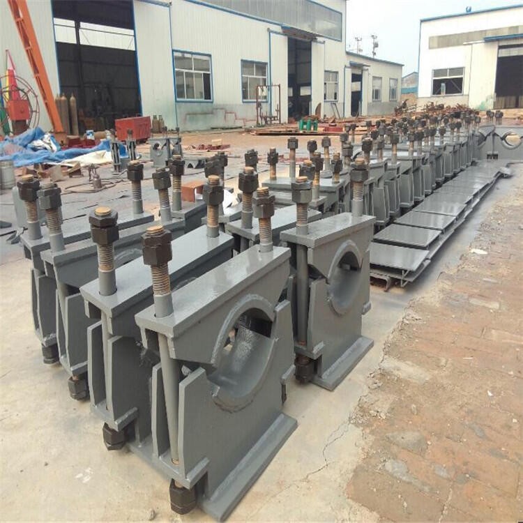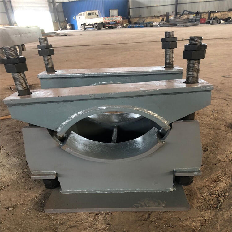 管夹固定支座,是相同管径支座中受力较大的一种。由于其坚固的卡箍结构,能够满足较大应力限制的需求,卡箍螺栓均采用加粗螺丝及双螺帽,适用于较高温度450℃——550℃的管道。