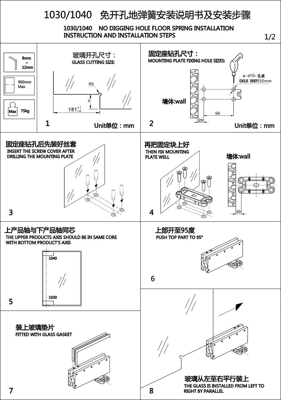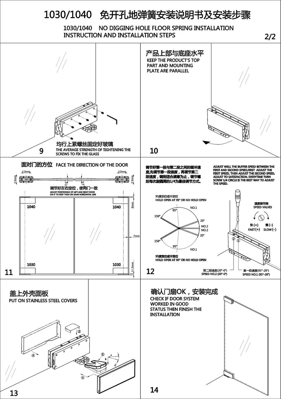 根据以上安装步骤可以快速安装一扇免挖坑地弹簧玻璃门,效率比传统的地弹簧更佳高效。
