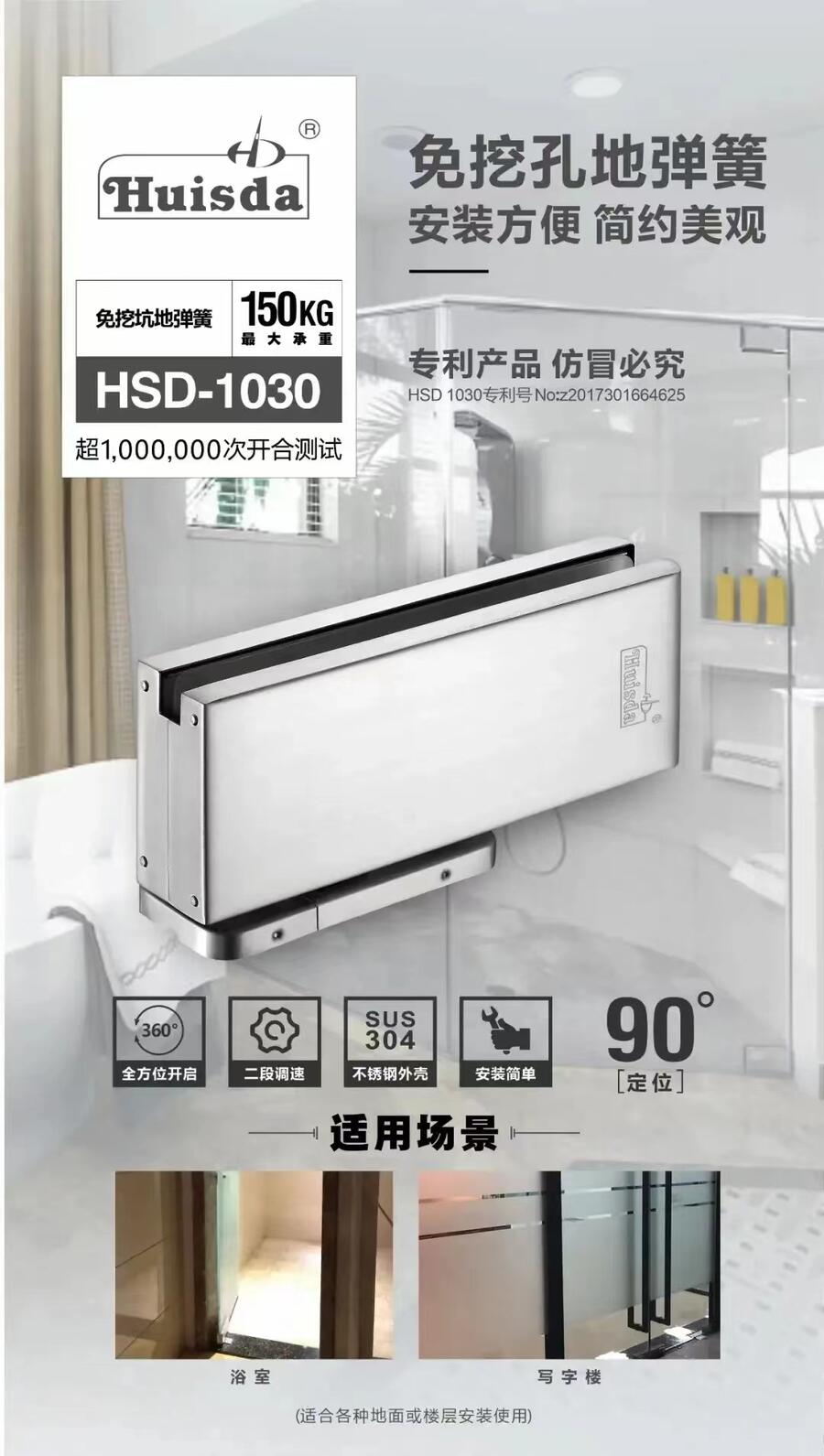 商铺名称:Huisda辉士达-免挖坑地弹簧-闭门器-玻璃门夹-浴室夹-不锈钢拉手