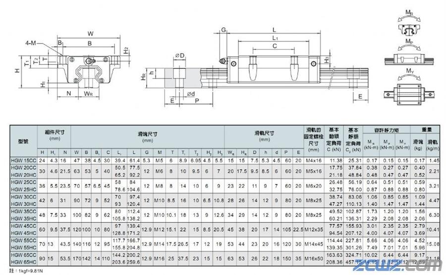 HGW25CC滑块上银HIWIN直线导轨滑块供应HIWIN滑块参考图